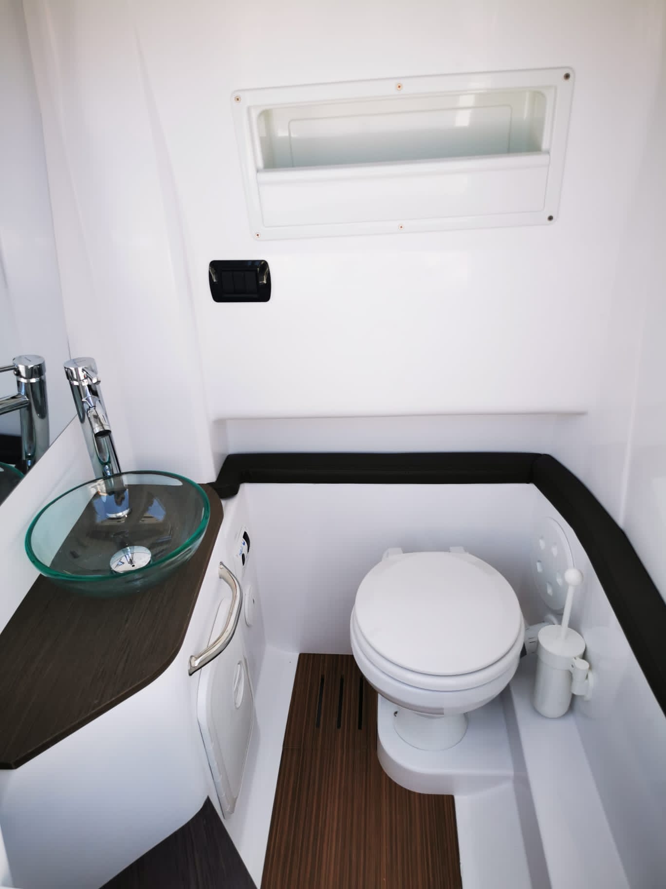 Sportivo, accogliente e dalle linee accattivanti, ha a bordo spazi ampi e confortevoli, dotato di diversi gavoni per lo stivaggio e con un ampio bagno posizionato nella consolle.