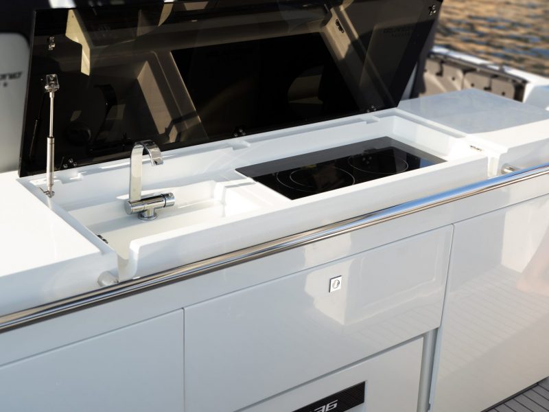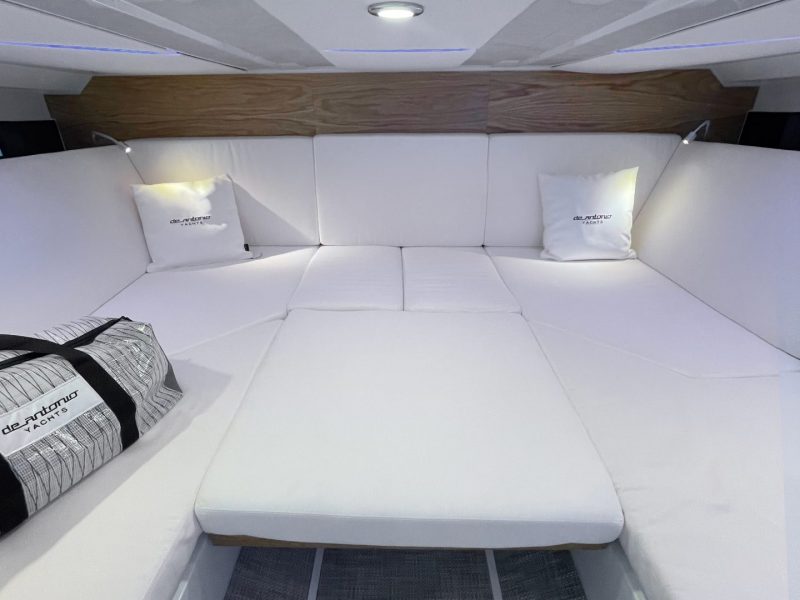 E' ideale sia per le escursioni giornaliere che le brevi crociere. Il design della coperta è walk-around, molto spazioso e confortevole e dispone anche di una cucina. All’interno troverete 4 posti letto in open-space ed un bagno separato. E tutto a oltre 40 nodi di velocità massima o 30 nodi di crociera grazie ai suoi due motori per complessivi 700 cavalli.